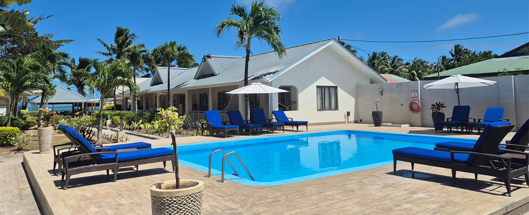 Sur l'île de Praslin, dans un jardin tropical calme et agréable, les Villas de Mer sont idéalement situées sur la belle plage de Grand Anse. Une atmosphère familiale et décontractée, une piscine et un très bon rapport qualité prix sont quelques uns des atouts de cette adresse, qui mérite également le détour pour ses superbes couchers de soleil sur le lagon.
