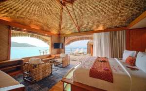 Cette suite offre la sensation unique de flotter au-dessus du lagon cristallin avec des vues exquises sur la luxuriante île que l'on nomme l'île Vanille. Cette catégorie de chambre offre une vue plus exclusive sur l'île de Taha'a.