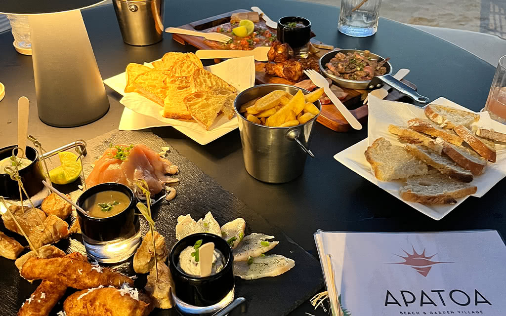Le restaurant Atipika'a est situé face au lagon et entouré d'une végétation tropicale authentique. Il suit le concept de déjeuner bistronomique en mettant en avant la cuisine locale avec des plats simples et authentiques préparés avec des ingrédients locaux et une touche de créativité. Les fruits, légumes et fleurs sont cultivés dans le grand jardin paysan dédié à proximité immédiate de l'hôtel. Des promenades panoramiques, cueillettes et dégustations y sont régulièrement proposées.