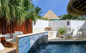 Ces suites spectaculaires disposent d'un grand patio privé avec baignoire circulaire Tranquility pour deux personnes et d'un accès direct et sans obstacle à une piscine Crystal Lagoon.