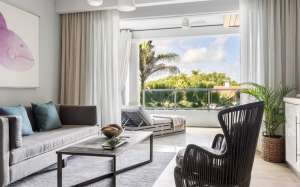 Ces suites romantiques de niveau Club sont situées au deuxième étage du bâtiment Cassia et offrent une vue sereine sur la piscine Crystal Lagoon et les jardins luxuriants du complexe.