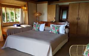 Toutes les villas sont climatisées et pourvues de : 1 lit king size ou 2 lits doubles et 1 lit Queen - brasseur d'air - téléphone - Mini réfrigérateur - machine à expresso - nécessaire thé - coffre-fort - internet wifi gratuit - sèche-cheveux - Salle de bain avec douche - table et fer à repasser - télévision haute technologie - jardin privée avec piscine - terrasses privée sur la plage avec espace dinatoire extérieur, vue sur le lagon et le mont Otemanu.