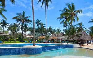 Situé à 1 heure de route de l'aéroport international, l'hôtel Bluebay Beach Resort & Spa est placé sur la plage de Kiwenga, sur la côte Est de l'île, au mileu de jardins tropicaux et d'une cocoteraie.